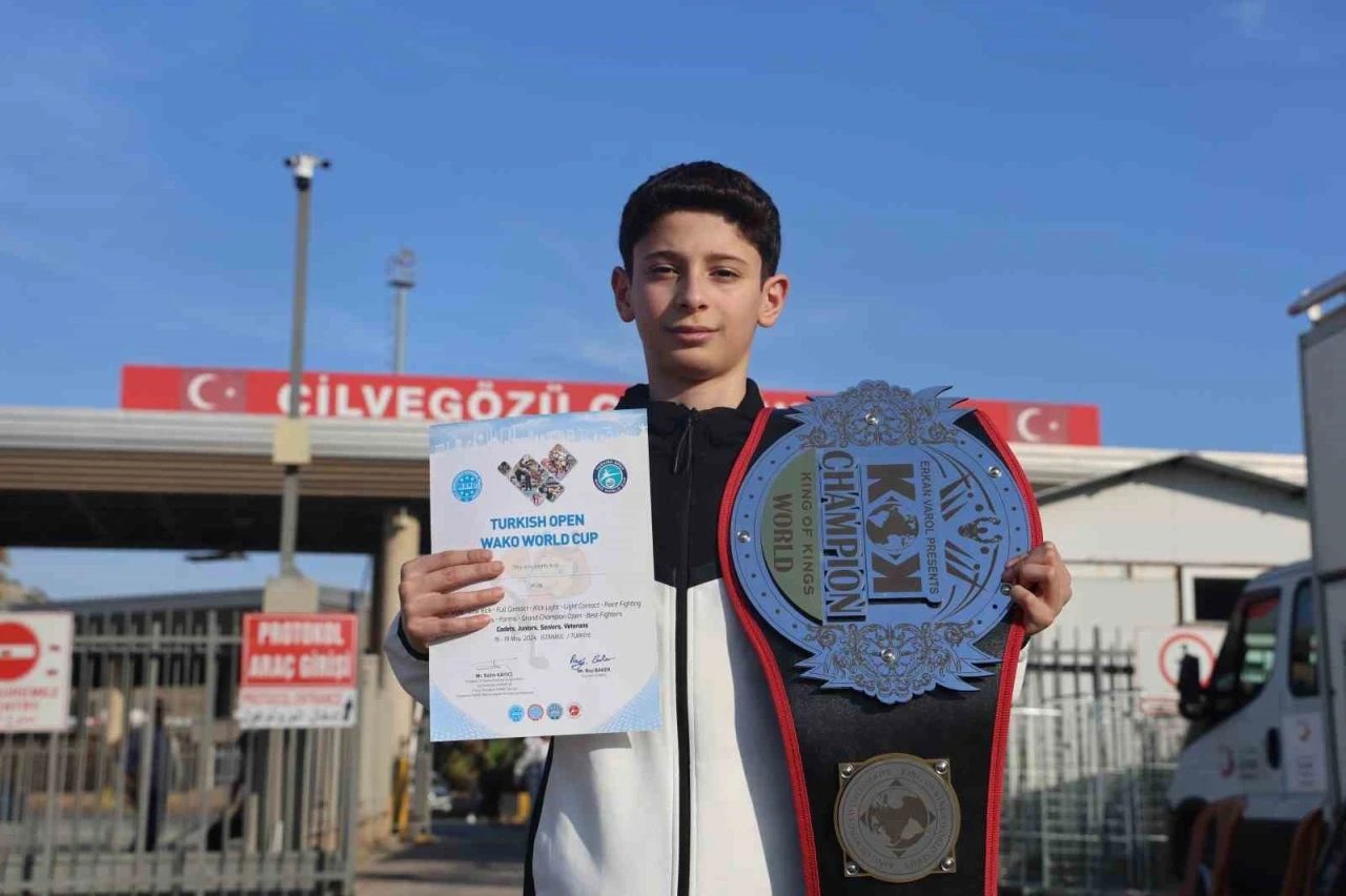 Hatay'da, suriye'deki 13 yıl süren savaştan kaçıp türkiye'ye sığınan suriyeli 13 yaşındaki oğlu abdurrahman ehşeni, babasından aldığı dövüş sporları eğitimleriyle türkiye’de dünya şampiyonası’nda ikinci olarak kemerin sahibi oldu.