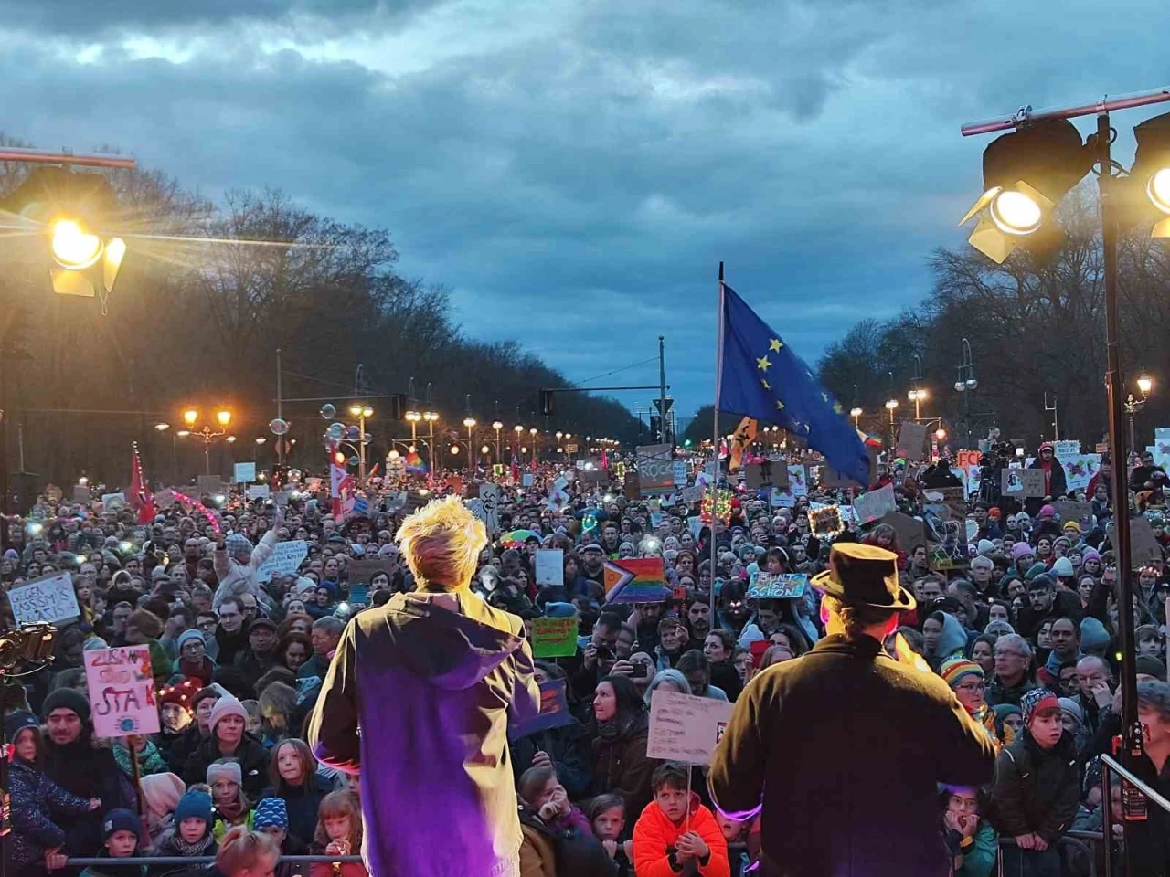 Almanya’nın başkenti Berlin’de yaklaşık 100 bin kişi artan aşırı sağ tehdidine karşı protesto gösterisi düzenlerken, eylemciler, cep telefonlarının ışıklarıyla sembolik bir ışık denizi oluşturarak “yaklaşan karanlığa” dikkat çekti.