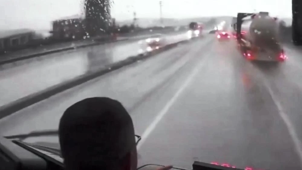 Samsun’da bir otobüs şoförü, ani şerit değiştirerek önüne çıkan tanker bağlı çekiciyi zamanında fark edince muhtemel bir facianın eşiğinden dönüldü. O anların sosyal medyada yayılması üzerine araştırma yapan Samsun Emniyet Müdürlüğü ekipleri, çekici sürücüsüne ceza uyguladı.