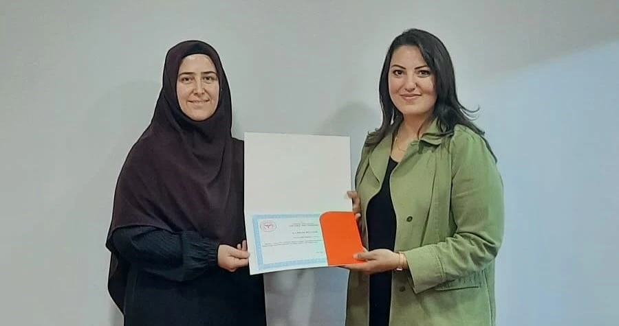Programı başarıyla tamamlayan sağlık çalışanlarına katılım belgeleri takdim edildi.
