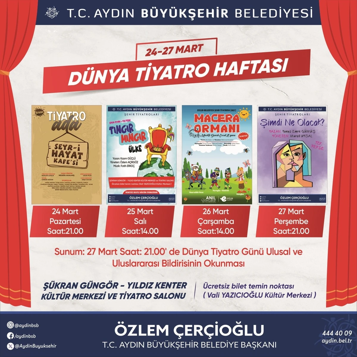 Başkan Çerçioğlu Aydınlıları Dünya Tiyatro Haftası etkinlikleri ile buluşturuyor