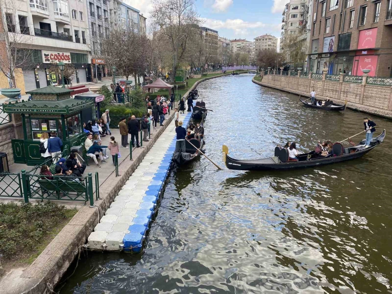 Ramazan Bayramı’nı fırsat bilip Eskişehir’e gelen turistler Porsuk Çayı’na ilgi gösterirken, gondol seferlerinde yoğunluk yaşandı.