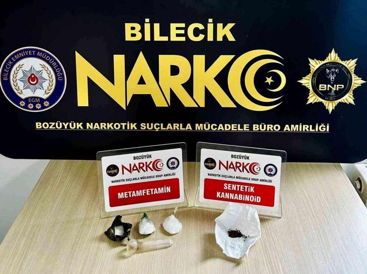 Alınan bilgililere göre Bilecik İl Emniyet Müdürlüğü’ne bağlı NARKO şube ihbar üzerine Bilecik’te şehirler arası otobüs ile seyahat eden şüpheli şahsı Bozüyük’te faaliyet gösteren dinlenme tesislerinde üzerinde uyuşturucu madde ile yakalandı. Şahsın üzerinden 23,63 gram (Metamfetamin) maddesi, 1,60 gram Sentetik kannabinoid (Bonzai) maddesi, 1 adet uyuşturucu madde kullanmaya yarayan cam aparat (Bong) ele geçirildi.