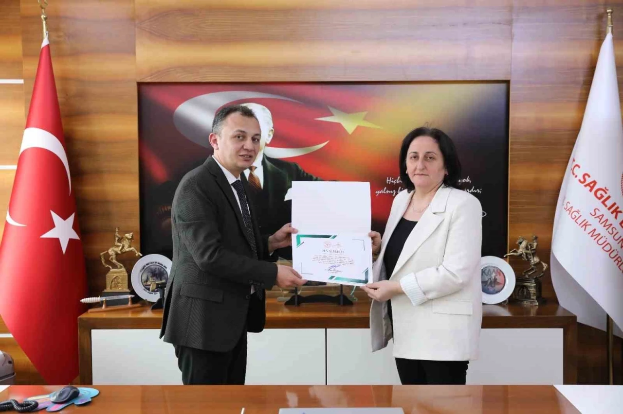 Samsun’da meslek hayatında geçirdiği 37 yılda binlerce bebeğin doğumuna yardımcı olan ebeye, Sağlık Bakanlığı tarafından teşekkür belgesi verildi.