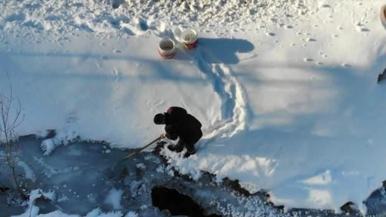Ahırlarının su şebekeleri donan köy sakinleri, hayvanlarını sulayabilmek için buzla kaplı göletlere yöneldi.