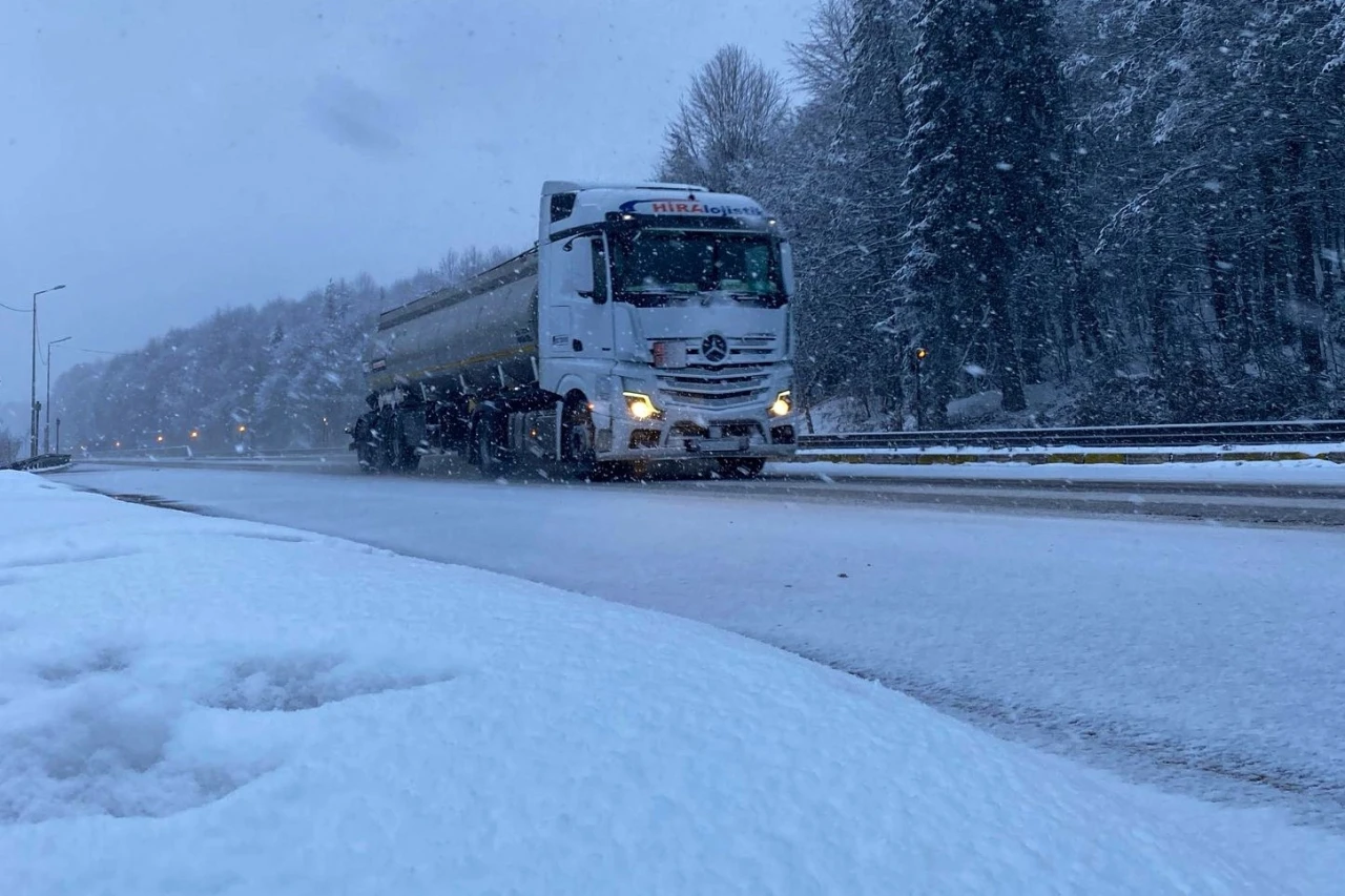 Türkiye’nin önemli geçiş noktalarından biri olan D-100 karayolunun Bolu Dağı geçişinde kar yağışı etkili oluyor. Yağış sebebiyle yeşil alanlarda kar kalınlığı 10 santimetreyi aştı.