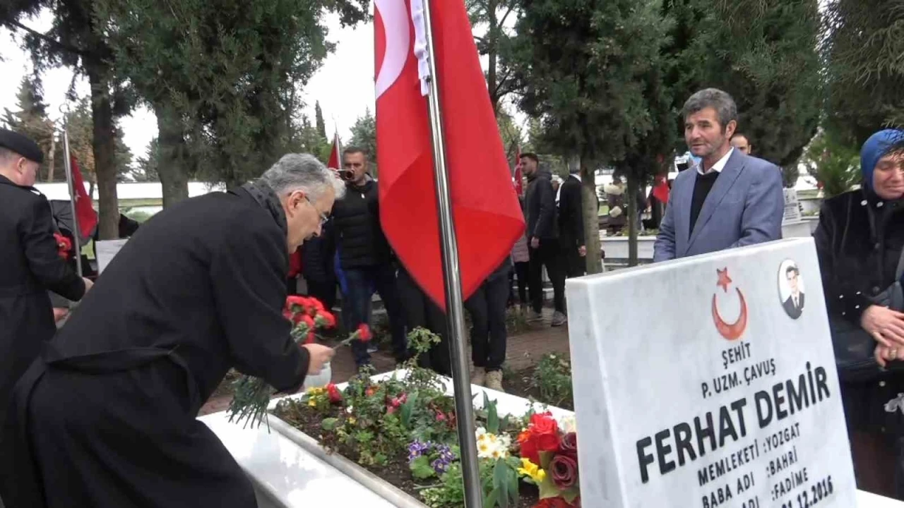 Valilik, İl Garnizon ve Büyükşehir Belediye Başkanlığı’nın çelenk takdimlerinin ardından saygı duruşu, saygı atışı ve İstiklal Marşı’nın okunmasıyla birlikte Vali Erol Ayyıldız tarafından şehitlikler ziyaret edilip, şehitlerimizin mezarına karanfiller bırakıldı ve dualar edildi.