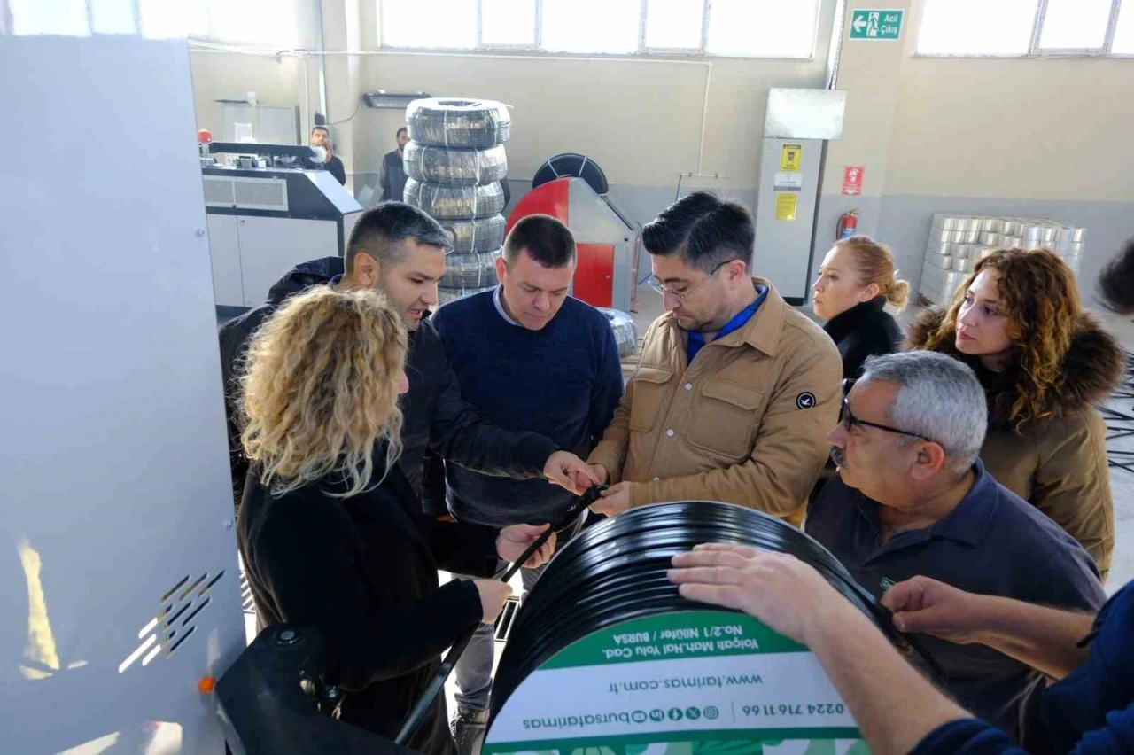 Bursa Büyükşehir Belediyesi’nin Tarım Peyzaj AŞ yatırımıyla kente kazandırdığı Tarım Plast Fabrikası (Damla Sulama Boru Üretim Tesisi), farklı şehirlere de örnek oluyor. Balıkesir Büyükşehir Belediyesi heyeti tarafından incelenen tesis, Balıkesir’de hayata geçirilmesi planlanan projeye örnek olacak.