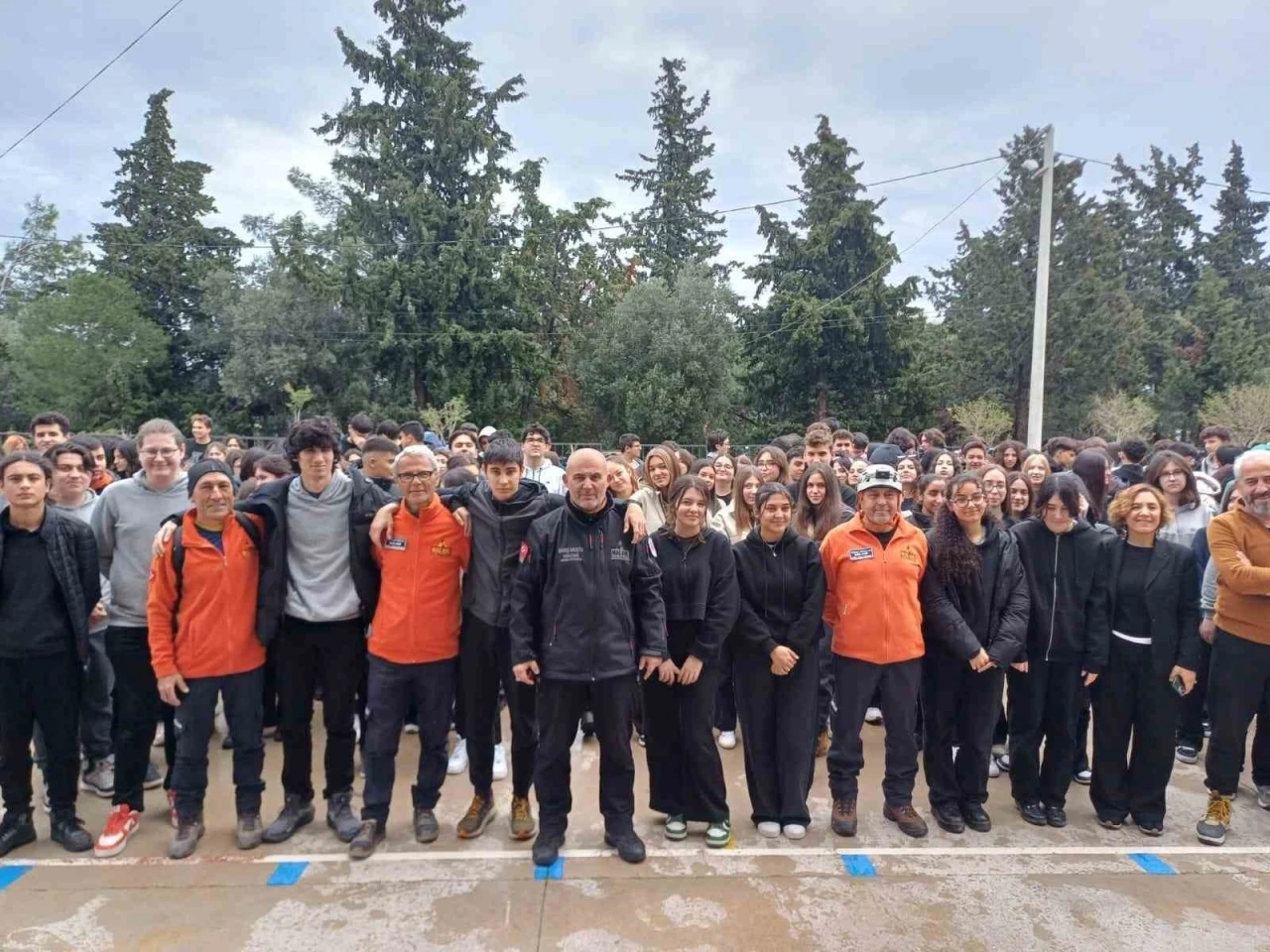 Muğla’nın Datça ilçesindeki bir okulda deprem tahliye tatbikatı yapılarak öğrencilere afet öncesi, anı ve sonrasında yapılması gerekenler anlatıldı. Muğla’nın Datça ilçesi Yılmaz Kardeşler Anadolu Lisesi’nde Sivil Savunma Günü dolayısı ile etkinlik düzenlendi. Muğla MAG AME Datça ekiplerinden bir tim, Yılmaz Kardeşler Anadolu Lisesi’nde öğrenciler ve öğretmenlere afet öncesi, anı ve sonrası konusunda bilgiler verdi. Okulda tüm öğrenci ve öğretmenlerin katılımı ile deprem anı doğru davranış şekilleri ve tahliye tatbikatı gerçekleştirildi.