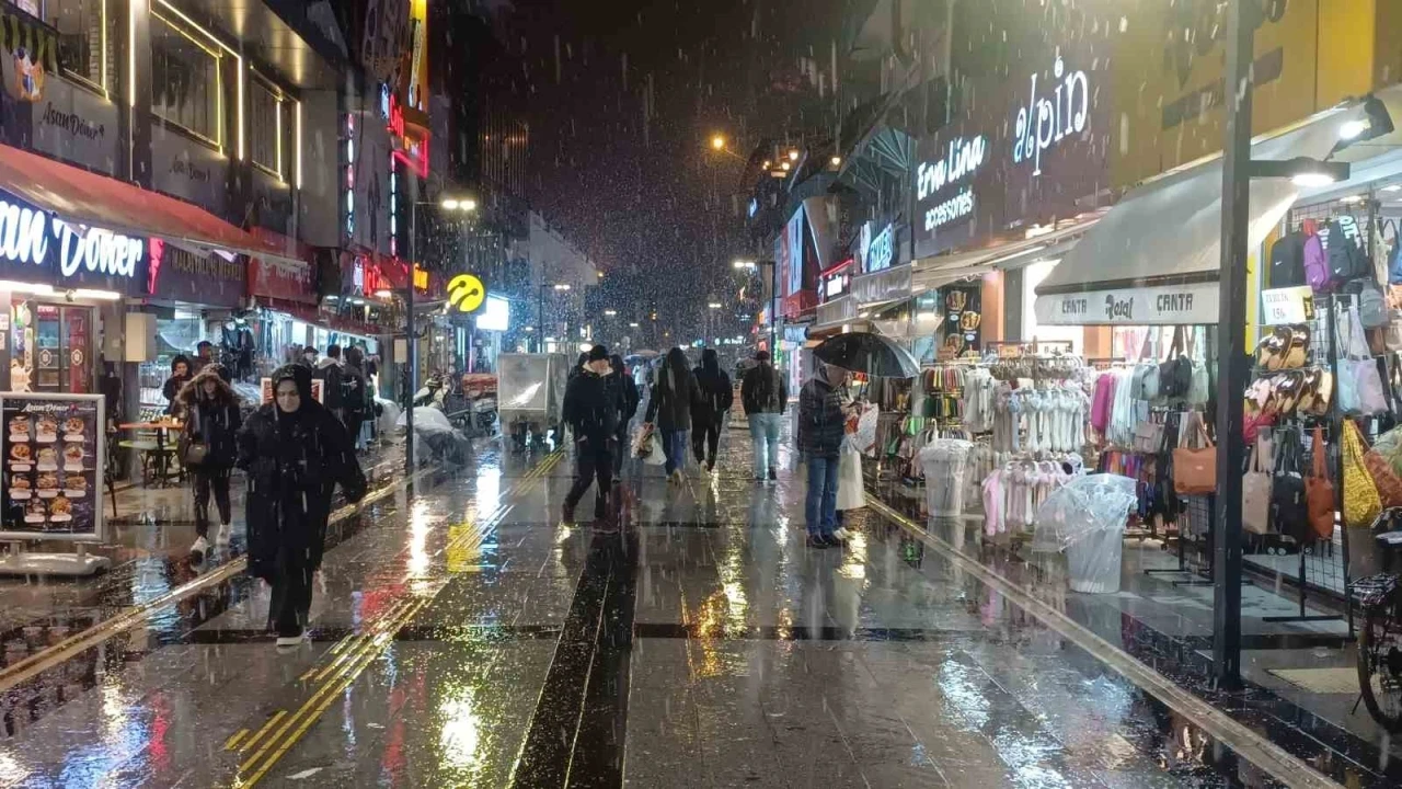 Düzce’ye mevsimin ilk karı yağdı, şehir merkezinde kartpostallık görüntüler oluştu.