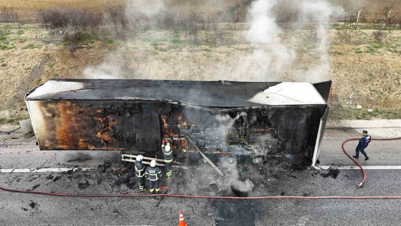 Edinilen bilgiye göre, Gürcistan uyruklu Archıl Gobadze idaresindeki UF001IT Gürcistan plakalı tırın dorsesi alev almaya başladı. Sürücü Gobadze, hemen çekici tırı dorseden ayırarak alevler sıçramadan uzaklaştırdı. Yol kenarına tırını çeken sürücü durumu itfaiye ekiplerine bildirdi.
