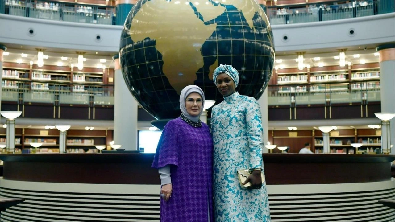 Emine Erdoğan ve Marie Khone Fay, Beştepe'deki Cumhurbaşkanlığı Millet Kütüphanesi'ne de ziyaret etti.