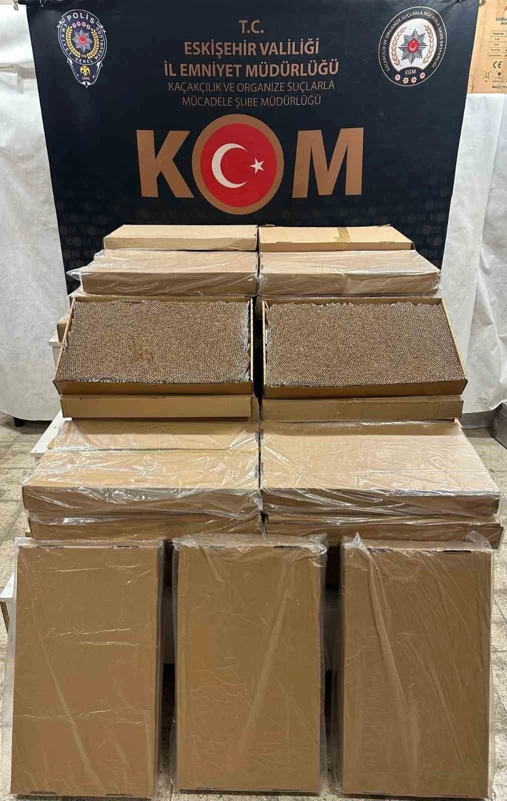 Eskişehir’de polis ekiplerince 75 bin dal içi doldurulmuş kaçak makaron ve 140 bin adet sigara filtresi ele geçirildi, olayla ilgili bir şüpheliye adli işlem uygulandı.