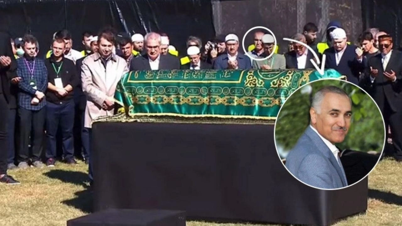 Örgüt töreni canlı yayınla aktarırken, Gülen'in tabutunun hemen arkasında bulunan ikinci safta bir kişi kameraya yansıdı.