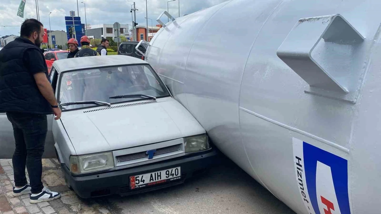 Kocaeli’nin Kartepe ilçesinde tırın dorsesinde taşınan boş gaz tankeri, yola devrilerek park halindeki iki otomobile çarptı. Yapılan incelemelerde tır sürücüsünün ehliyetinin olmadığı ortaya çıktı.
