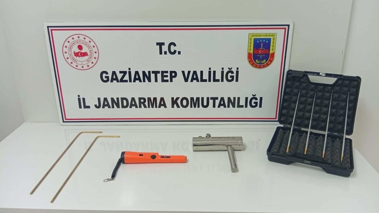 Gaziantep İl Jandarma Komutanlığı ve adli makamların koordinesiyle Araban ilçesinde tarihi eser kaçakçılığının önlenmesine yönelik çalışma yapıldı. Çalışmalar sırasında define bulmak amacıyla izinsiz kazı yaptığı tespit edilen A.Y., M.G., M.Ş. ve G.Ö. isimli şüpheliler suçta kullandıkları dedektör ve kazı malzemeleri ile birlikte suçüstü yakalanarak gözaltına alındı.