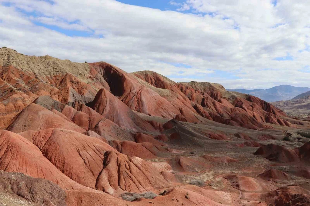 Erzurum’un Oltu ilçesinde bulunan rengarenk tepeler, hafta sonu doğa fotoğrafçılarını ağırladı. Oltu’nun, gökkuşağını andıran görüntüleriyle dikkat çeken tepeleri, 45 milyon yıl öncesine dayanan oluşumlarıyla adeta bir doğal harika olarak ifade ediliyor. Dünyada benzeri yalnızca Çin’de bulunan Oltu’nun rengarenk tepeleri, özellikle yağmur sonrası daha da belirginleşerek, doğa fotoğrafçılarının gözdesi haline geliyor. Tuzla, Yolboyu, Bahçecik ve Kaleboğazı mahallelerinde yer alan gökkuşağı ve kırmızı tepeler, her geçen gün daha fazla turistin ilgisini çekiyor.