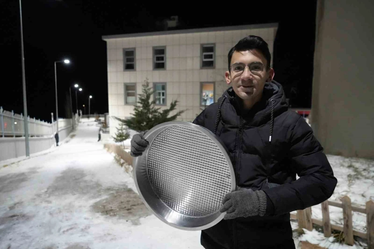 Çiğköfte tepsisiyle kaymanın poşetle kaymaktan daha zevkli olduğunu söyleyen Gümüşhane Üniversitesi Yazılım Mühendisliği Bölümü öğrencisi Erdem Yıldız, “Dün gece kar yağmaya başladı, biz odamızdaydık. Yurdumuz yüksekte olduğu için sosyal etkinliğimiz çok olmuyor biz de neden kaymayalım dedik. Çünkü burada çok güzel bir yokuşumuz var kaymaya başladık, bir arkadaşımız videoya çekti ve o video çok izlendi. Burada herkesin poşeti vardı kimse bana poşet vermedi, ben de bekleyin geliyorum dedim annemin yolladığı çiğköfte tepsisini aldım geldim ve şimdi görürsünüz dedim. Çiğköfte tepsisiyle kaymak poşetten daha zevkli. En son kayarken zaten rekora koşuyordum ama bir tane arkadaş aşağıdaki kız yurduna doğru gidiyordu ona ne oldu bilmiyorum. Annem videoyu görünce tepsiyi çizme demişti ama ona yeni tepsi almak zorundayım” dedi. “Çöp poşetini vücuduma geçirerek kaydım”