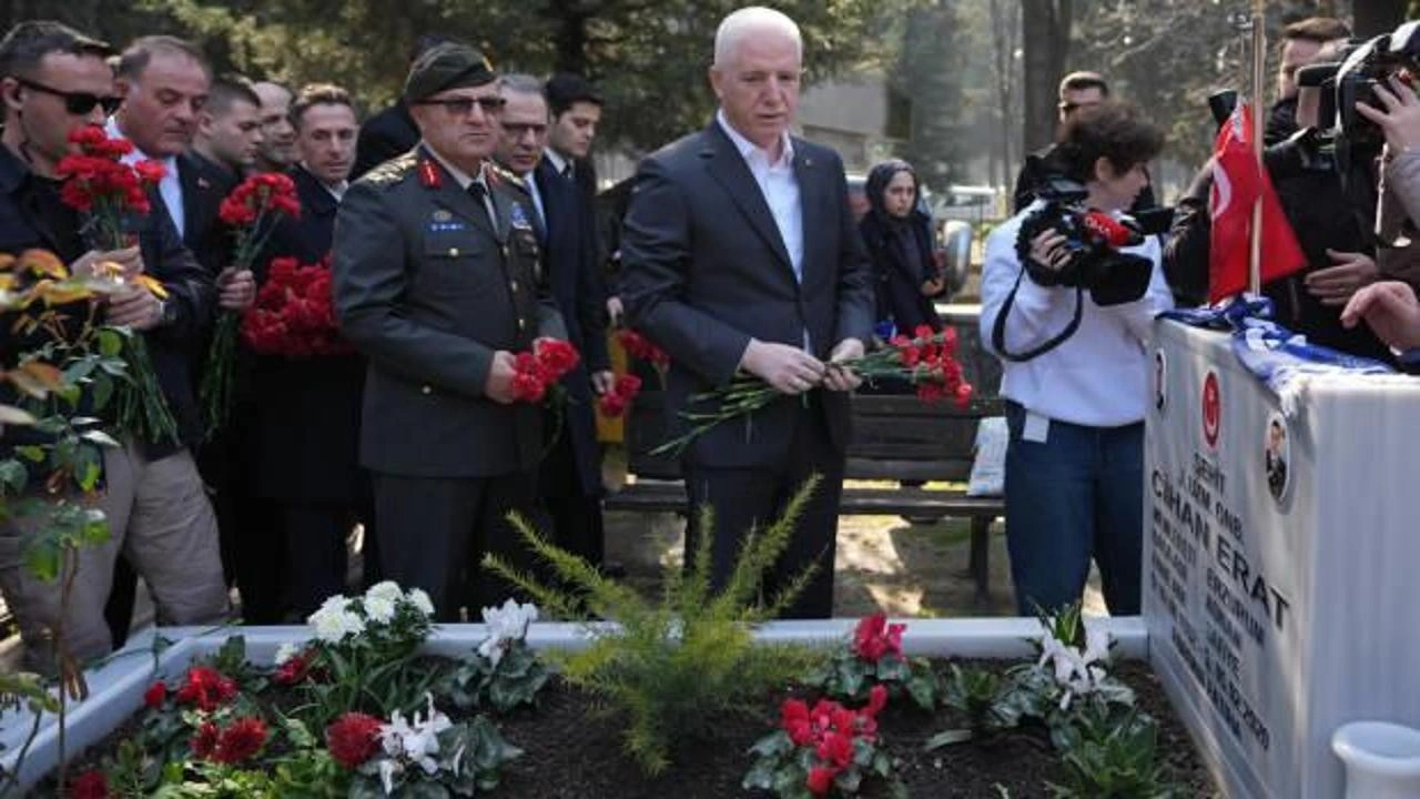 Şehitlerin yakınlarına başsağlığı dileyen Gül, daha sonra kabirlere karanfil bırakıp dua etti.