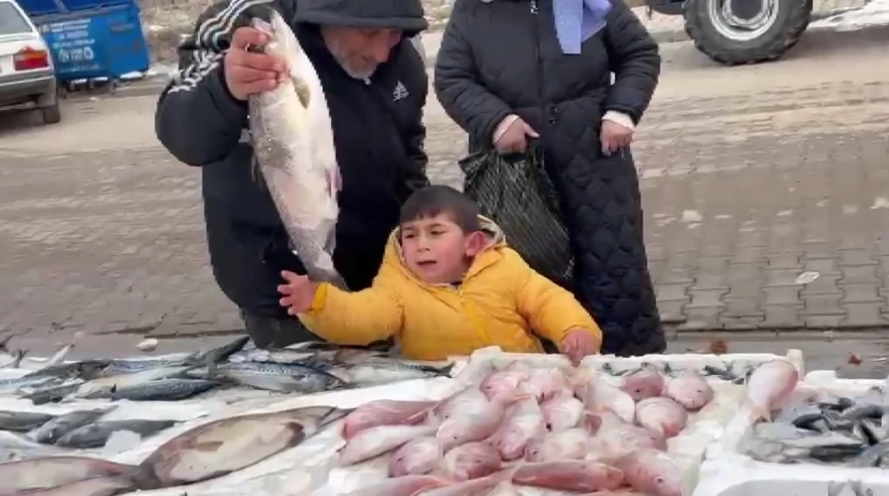 Sivas’ta bir çocuğun balığı ağlayarak istediği anlar, sosyal medyada viral oldu. Çocuğun istediği balığın balıkçı tarafından hediye edilmesi takdir topladı.