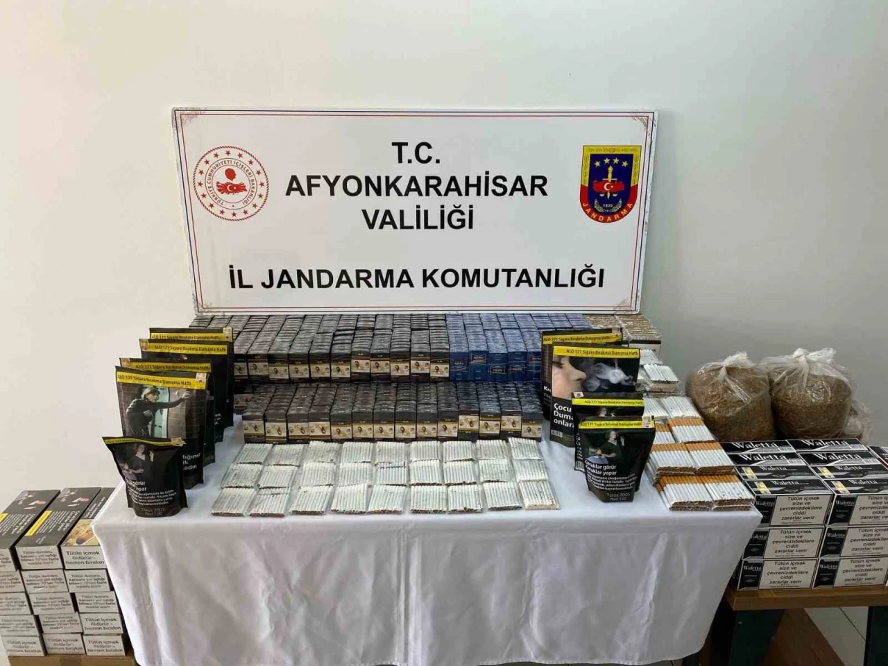Afyonkarahisar’da jandarma tarafından gerçekleştirilen operasyonda 15 bine yakın kaçak dolu ve boş makaron ele geçirildi.