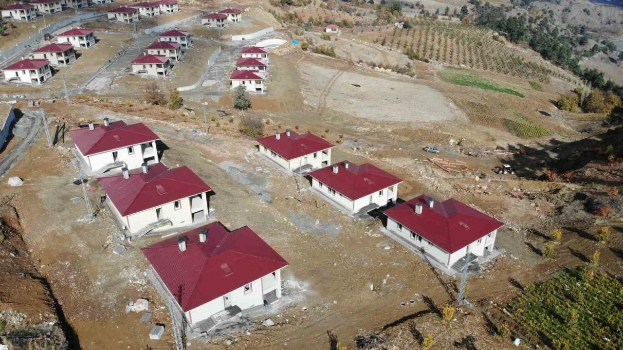 Kahramanmaraş merkezli meydana gelen depremlerde dağlardan kopan dev kayaların tahrip ettiği köyde yapımı devam eden konutlar hızla yükseliyor. Köy evlerinin bir kısmı tamamlanıp çevre düzenlenmesi yapılırken bir kısmının ise temel çalışmaları sürüyor.