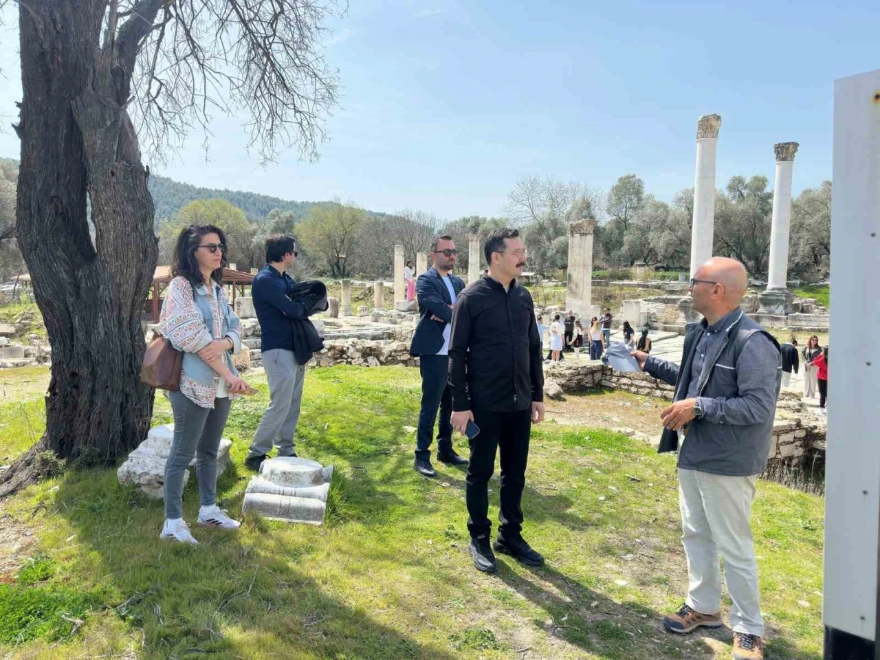 Kalkınma Ajansları Genel Müdürü Ahmet Şimşek, Sanayi ve Teknoloji Bakanlığı Kalkınma Ajansları Genel Müdürlüğü koordinasyonunda çalışmalarını sürdüren Güney Ege Kalkınma Ajansı’nın (GEKA) desteklediği, bölgenin kültürel mirasını ve turizm altyapısını güçlendiren projeleri yerinde inceledi. İnceleme kapsamında Ula Göleti, Stratonikeia Antik Kenti ve Beçin Kalesi’nde gerçekleştirilen proje faaliyetlerini ziyaret eden Şimşek, GEKA’nın sağladığı desteklerin, Muğla’nın kültürel mirasını koruyarak turizm sektörüne yeni fırsatlar sunduğunu belirtti. Bölgedeki projelerin sürdürülebilir turizme ve yerel ekonomiye önemli katkılar sunduğunu vurgulayan Şimşek, yapılan çalışmalardan duyduğu memnuniyeti dile getirdi. Muğla Büyükşehir Belediyesi tarafından hayata geçirilen ve GEKA tarafından 11 milyon TL desteklenen Ula Göleti Çevre Düzenlemesi ve Bisiklet Yolları Projesi ile Ula Göleti çevresinde bisiklet ve yaya yolları oluşturuldu. Proje kapsamında, gölet çevresinin turistik bir cazibe noktası haline gelmesi sağlandı. Çevre düzenlemeleri, dinlenme alanları, yön levhaları ve temiz enerji ile aydınlatma sistemleri sayesinde bölge, doğa turizmi için önemli bir merkez haline geldi. Stratonikeia Antik Kenti’nde Pamukkale Üniversitesi Rektörlüğü ve Yatağan Kaymakamlığı tarafından iki ayrı proje yürütüldü. Beylikler Dönemi Selçuk Hamamı Restorasyon Projesi ile Stratonikeia Antik Kenti’nin girişinde bulunan tarihi hamamın onarım, aydınlatma ve çevre düzenlemesi çalışmaları tamamlandı. Yaklaşık 12 milyon TL bütçeye sahip olan proje, yaklaşık 9 milyon TL’lik ajans desteğiyle hayata geçirildi. Proje sayesinde UNESCO Dünya Geçici Miras Listesi’nde yer alan antik kentin, daimi listeye alınması için önemli bir adım atıldı. Stratonikeia ve Lagina Bölgelerinin Turizme Kazandırılması Projesi ise Stratonikeia ve Lagina’daki tarihi dokunun korunarak turizme kazandırılmasını hedefiyle gerçekleştirildi. GEKA’nın 19,5 milyon TL destek sağladığı, toplam 26 milyon TL bütçeli proje kapsamında antik kente yönelik çeşitli restorasyon ve çevre düzenleme çalışmaları yapıldı. Kuzey şehir kapısı, sütunlu cadde, çeşme havuzu ve mozaikler gibi birçok tarihi unsurun korunması ve tanıtılması sağlanarak, kültür turizminin gelişimine katkı sunuldu. Milas Kaymakamlığı tarafından yürütülen "Beçin Ören Yeri’nin Çevre Düzenleme Projesi ve Uygulama Çalışması 1.Etap" projesi ile ören yerinin çevre düzenlemesi yapıldı ve yerleştirilen güvenlik kameraları ile alanın güvenliği sağlandı ve ören yerinin cazibesi arttırıldı. Projenin bütçesi 6 milyon TL olurken GEKA’nın projeye desteği yüzde 75 oranında gerçekleşti. Proje kapsamında alana yerleştirilen yönlendirme levhaları ve restore edilen yollar ile ören yerinin ziyaretçi sayısı arttı. Bölgedeki doğal ve kültürel zenginlikleri koruyarak turizme kazandırmayı hedefleyen GEKA, altyapı iyileştirme, restorasyon, tanıtım ve sürdürülebilir turizm uygulamalarıyla bölgenin cazibesini artırmaktadır. Bugüne kadar hayata geçirilen projeler sayesinde hem yerel ekonomiye katkı sağlanmış, hem de bölgenin ulusal ve uluslararası düzeyde bilinirliği artırılmıştır. GEKA, bundan sonra da bölgesel kalkınmayı desteklemeye ve sürdürülebilir turizm projelerine katkı sunmaya devam edeceği bildirildi.