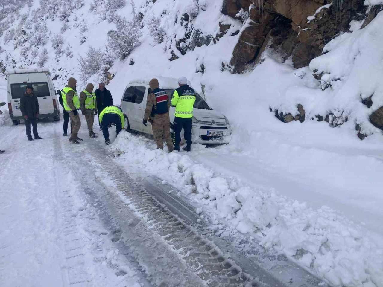 Bitlis’in Tatvan ilçesinde kar nedeniyle araçları yoldan çıkarak mahsur kalan vatandaşların imdadına Mehmetçik yetişti.
