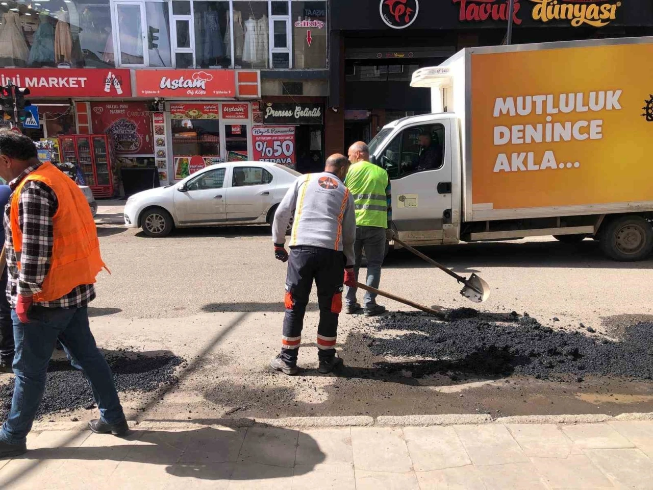 Karayolları ekipleri, havalarının ısınmasıyla birlikte kışın zor şartlarında bozulan e çukurlar oluşan başta Atatürk caddesi olmak üzere birçok cadde de çukurları asfalt ile doldurdu.