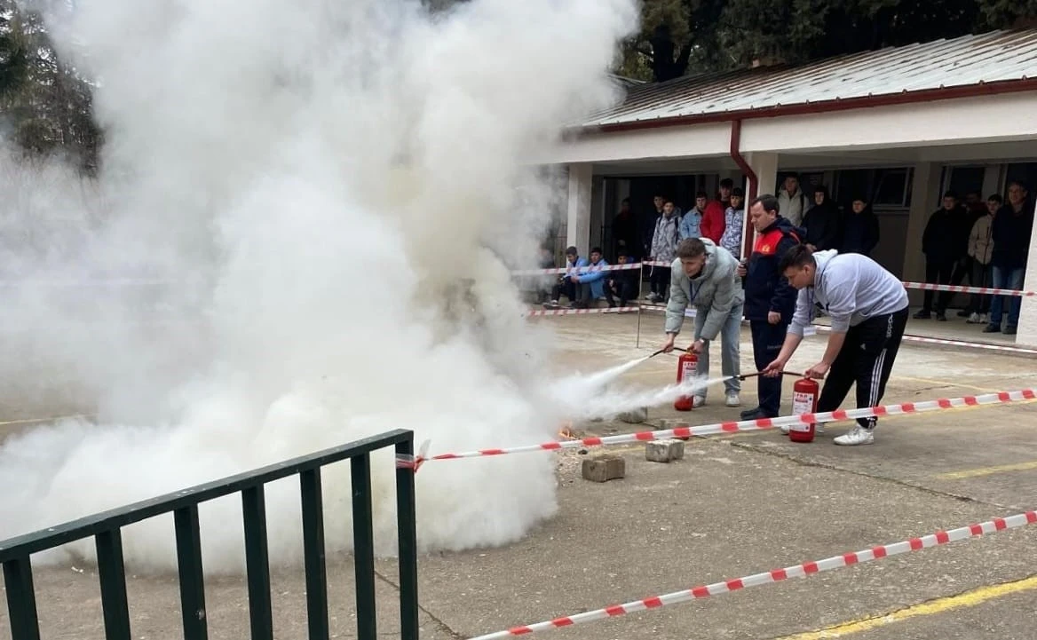 Ekipler öğrencilere yangın anında yapılması gerekenler ve yangından korunma önlemleri gibi konularda öğrencilere eğitim vererek, bina tahliye provası ve kontrollü ateş önünde yangın tüpüyle söndürme tatbikatı yaptırdı.