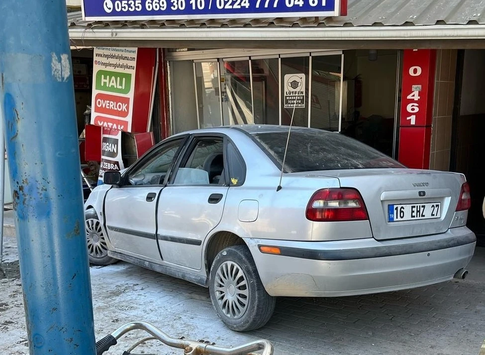Bursa’nın İnegöl ilçesinde kontrolden çıkıp iş yerine dalan otomobil sürücüsü yaralandı. O anlar güvenlik kamerasına anbean yansıdı.