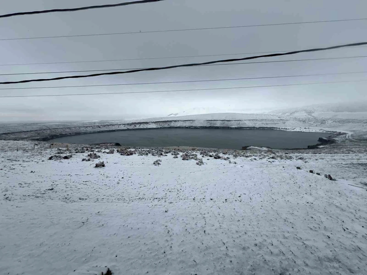 Konya’nın Karapınar ilçesinde nisan ayında yağan kar ilçeyi beyaz örtüyle kaplarken, krater gölü olan Acıgöl’de de kartpostallık görüntüler oluştu. Çevrede bulunan vatandaşlar ise karlı göl manzarası izleyerek kartopu oynadı.
