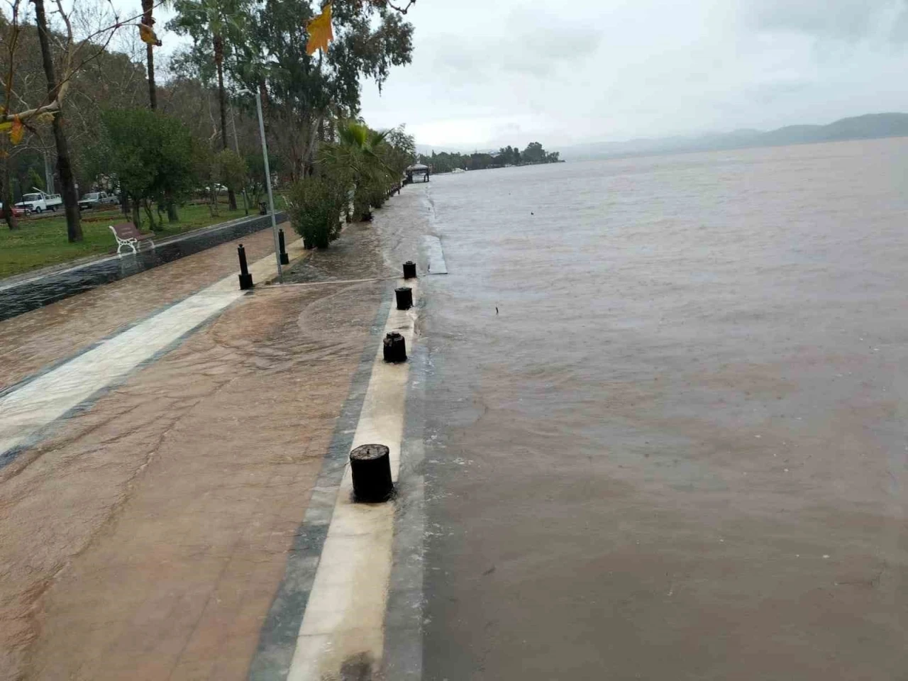 Muğla’nın Köyceğiz ilçesinde 3 günden bu yana aralıklarla devam eden yağış nedeniyle Köyceğiz Gölü’nün su seviyesi yükseldi. Göl Delta Mevkiinde taşarak Köyceğiz Atatürk Kordonu’nundaki yürüyüş yolunu su bastı. Kargıcak Çayı, Namnam Çayı ve Yuvarlak Çayı yağmur sularını göle taşıdı. Köyceğiz’de devam eden sağanak yağılarla birlikte gölün su seviyesi yükseldi. Yükselen sular ise kordon boyundaki yürüyüş yolunun bir kısmını sular altında bıraktı. Ayrıca Kargıcak Çayı’nın gölle birleştiği alanda iş makinesi ile sel sularının getirdiği atıkların temizleme çalışması yapıldı. Vatandaşlar, Köyceğiz’de 3 günden bu yana yağmurun devam etmesi nedeniyle toprağın doyduğunu, derelerden gelen suların artarak devam ettiğini ifade ederek bu durumun çiftçileri sevindirdiğini belirtti.