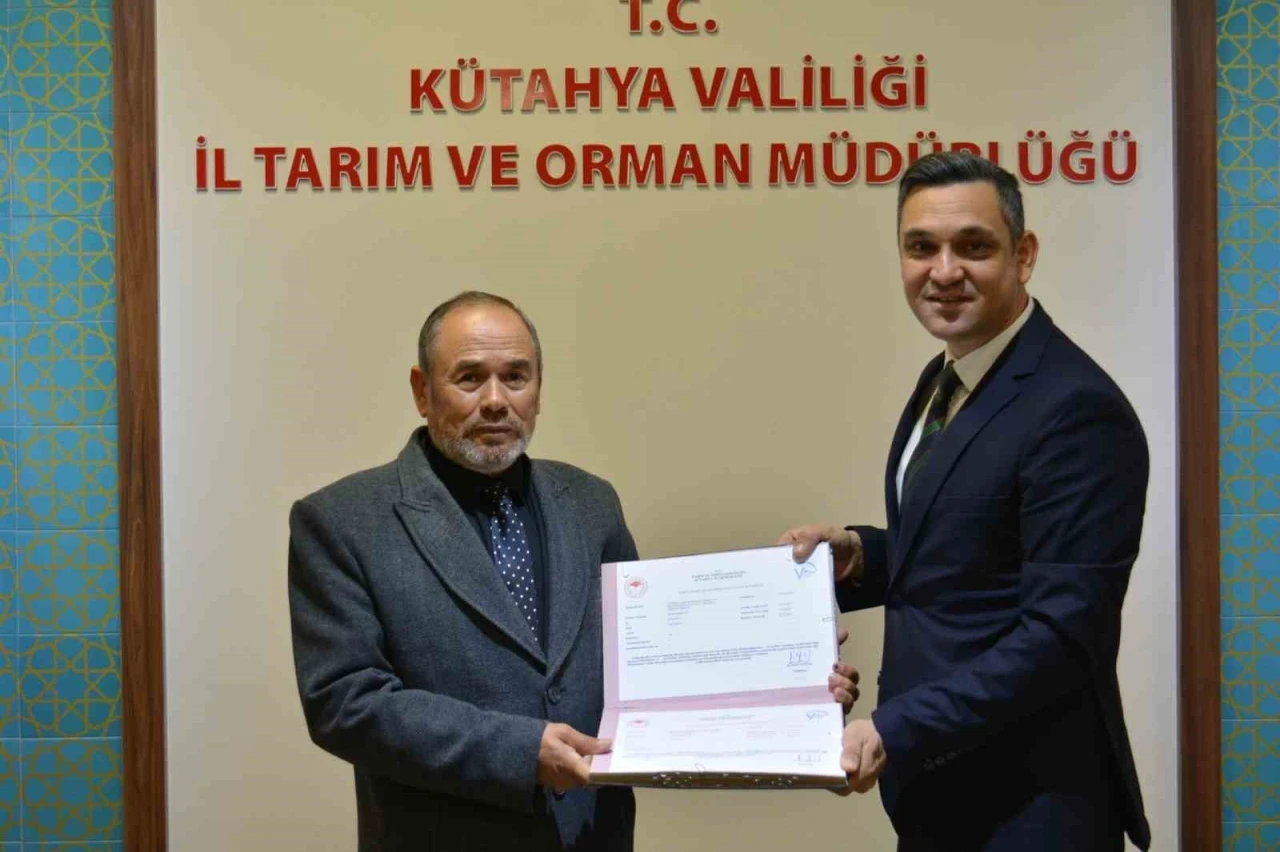 Nasuh Çelik’e hastalıktan ari belgesi, İl Tarım ve Orman Müdürü Emre Yeniay tarafından makamında takdim edildi.