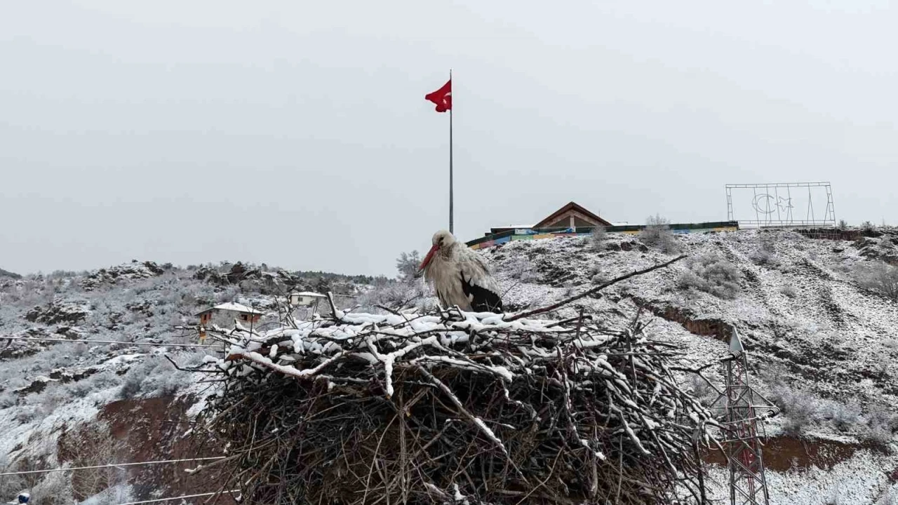 Ankara’yı etkisi altına altına alan kar yağışı, Kızılcahamam ilçesinde bulunan leylek apartmanı sakinlerini de etkiledi.