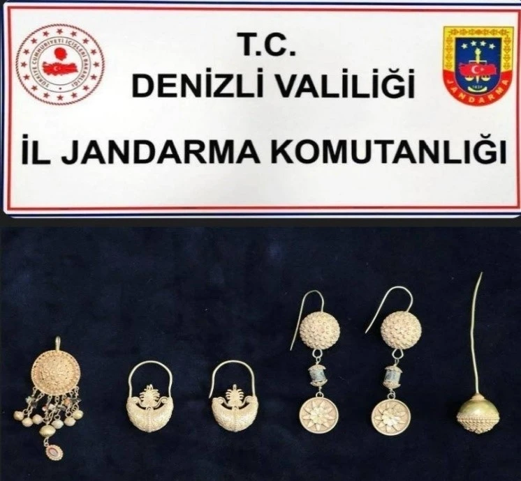 Edinilen bilgiye göre; Denizli İl Jandarma Komutanlığı ekipleri tarafından, 2863 sayılı Kültür Varlıklarını Koruma Kanununa Muhalefet suçunu işledikleri belirlenen 4 şüphelinin yakalanmasına yönelik olarak eşzamanlı operasyon düzenlendi. İcra edilen operasyon neticesinde M.Ö. 4 yüzyılda Lidya dönemine ait 2 çift halinde 4 adet altın küpe, 1 adet altın saç iğnesi ile 1 adet altın kolye ucu ele geçirildi. Operasyonda ele geçirilen tarihi eserler muhafaza altına alınırken, gözaltına alınan 4 şüpheli jandarmadaki sorgularının adli makamlara sevk edildi. Şüphelilerden 2’si tutuklanarak cezaevine teslim edildi.