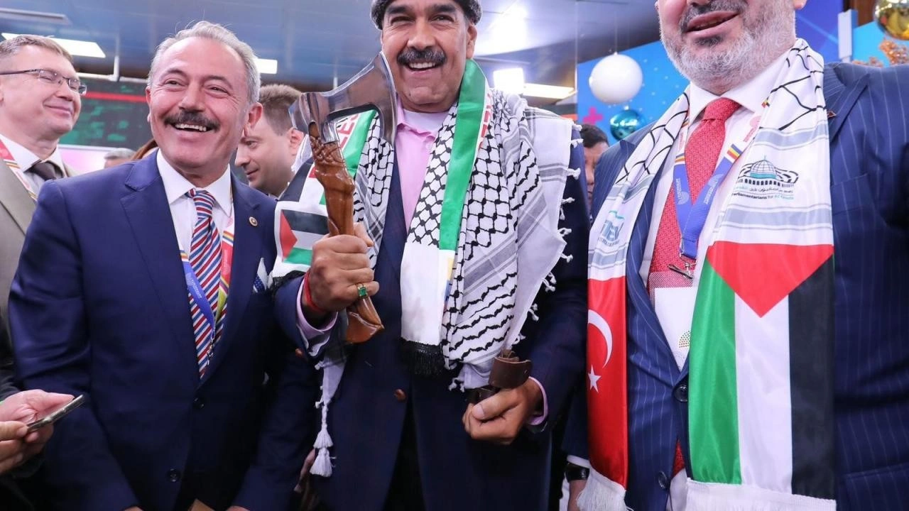 "BM'yi ve BM'ye bağlı çalışan kurumları yok sayan, UNRWA'nın okulunu bombalayan, BM'nin askerlerini öldüren bu caniler hakkında BM gereğini anladıkları dilden yapmalıdır. BM eğer kendi hukukunu ve saygınlığını korumak istiyorsa siyonist çete yapılanmasını cezalandırmalı ve BM üyeliğinden derhal çıkarmalıdır.İnsanlık düşmanı işgalci Siyonizme karşı küresel vicdan cephesi her geçen gün büyüyor. Katil sürüsüne destek veren herkes onlarla beraber yalnızlaşıyor. 50 binden fazla insanı katlederek soykırım ve savaş suçu işleyen faşist siyonistler artık her yerde; Asya'dan Latin Amerika'ya, Avrupa'dan Güney Avrupa'ya kadar vicdanlı halkların haklı tepkileriyle karşılaşıyor. Eninde sonunda insanlık ve iyiler kazanacak."Heyet Ak Parti İstanbul Milletvekili Rümeysa Kadak, Denizli Milletvekili Şahin Tin, Edirne Milletvekili Fatma Aksal ve Ardahan milletvekili Kaan Koç’dan oluştu.Heyet Başkan Maduro’ya diriliş Ertuğrul’u hatırlatarak Börk, balta çini vazo hediye etti.