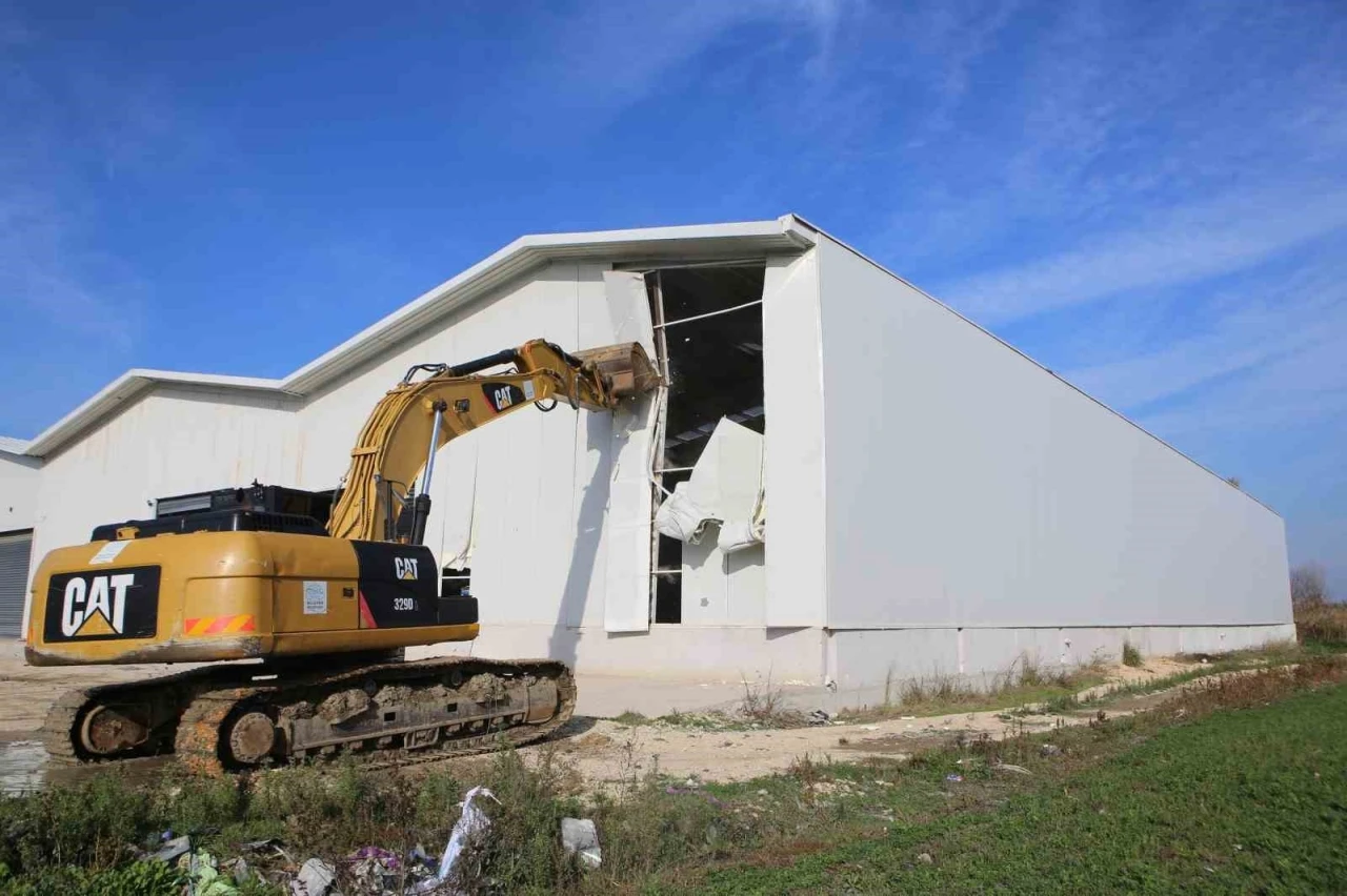 Nilüfer’de tarım arazisi üzerine kaçak olarak inşa edilen bin metrekarelik depo, Nilüfer Belediyesi ekiplerince yıkıldı.