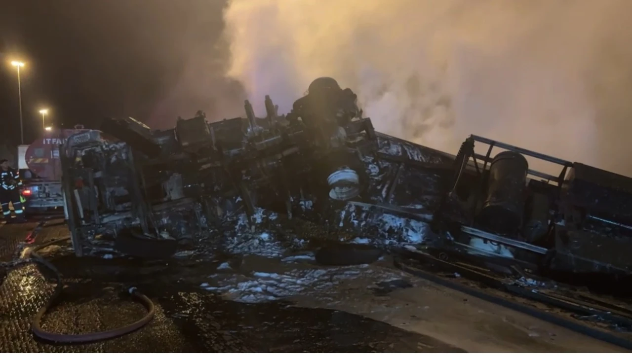 Mersin’in Tarsus ilçesinde otoyolda kaza yapan tır alev alev yandı, sürücü hayatını kaybetti.