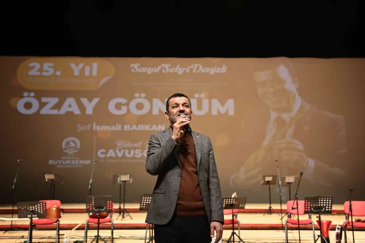 Denizli’nin yetiştirdiği Türk Halk Müziği’nin unutulmaz usta ismi Özay Gönlüm, vefatının 25’inci yılında Denizli Büyükşehir Belediyesi tarafından düzenlenen bir anma programıyla yâd edildi. Denizli Büyükşehir Belediyesi tarafından düzenlenen "Özay Gönlüm 25. Yıl Anma Programı", Cumartesi akşamı Nihat Zeybekci Kongre ve Kültür Merkezi’nde ve sanatçının adını taşıyan Özay Gönlüm Salonu’nda büyük bir katılımla gerçekleşti. Türk Halk Müziği’nin unutulmaz ismi Özay Gönlüm, sevilen türküleriyle bir kez daha anıldı. Anma programına Denizli Büyükşehir Belediye Başkanı Bülent Nuri Çavuşoğlu, Başkanvekili Ali Marım, İlçe Belediye Başkanları, davetliler ve Özay Gönlüm’ü anmak isteyen çok sayıda vatandaş katıldı. Usta sanatçının Çatalçeşme Oda Tiyatrosu bahçesindeki anıt heykeli önünde yapılan çelenk sunma töreninin ardından gerçekleştirilen anma konserinde Denizli Büyükşehir Belediyesi Konservatuvarı Türk Halk Müziği Korosu’nun sahne alırken şef İsmail Barkan yönetiminde sanatçının en sevilen eserleri seslendirildi. Konser boyunca salonda duygusal anlar yaşanırken, dinleyiciler de türkülere hep bir ağızdan eşlik etti. Katılımcılar, böyle anlamlı bir etkinliği düzenleyen Denizli Büyükşehir Belediyesi’ne teşekkür etti. Gecenin sonunda sahneye çıkan koro üyeleri ve izleyiciler, Özay Gönlüm’ü alkışlarla yâd etti. "Özay Gönlüm sadece Denizli’ye değil, Dünya kültürüne bir miras"