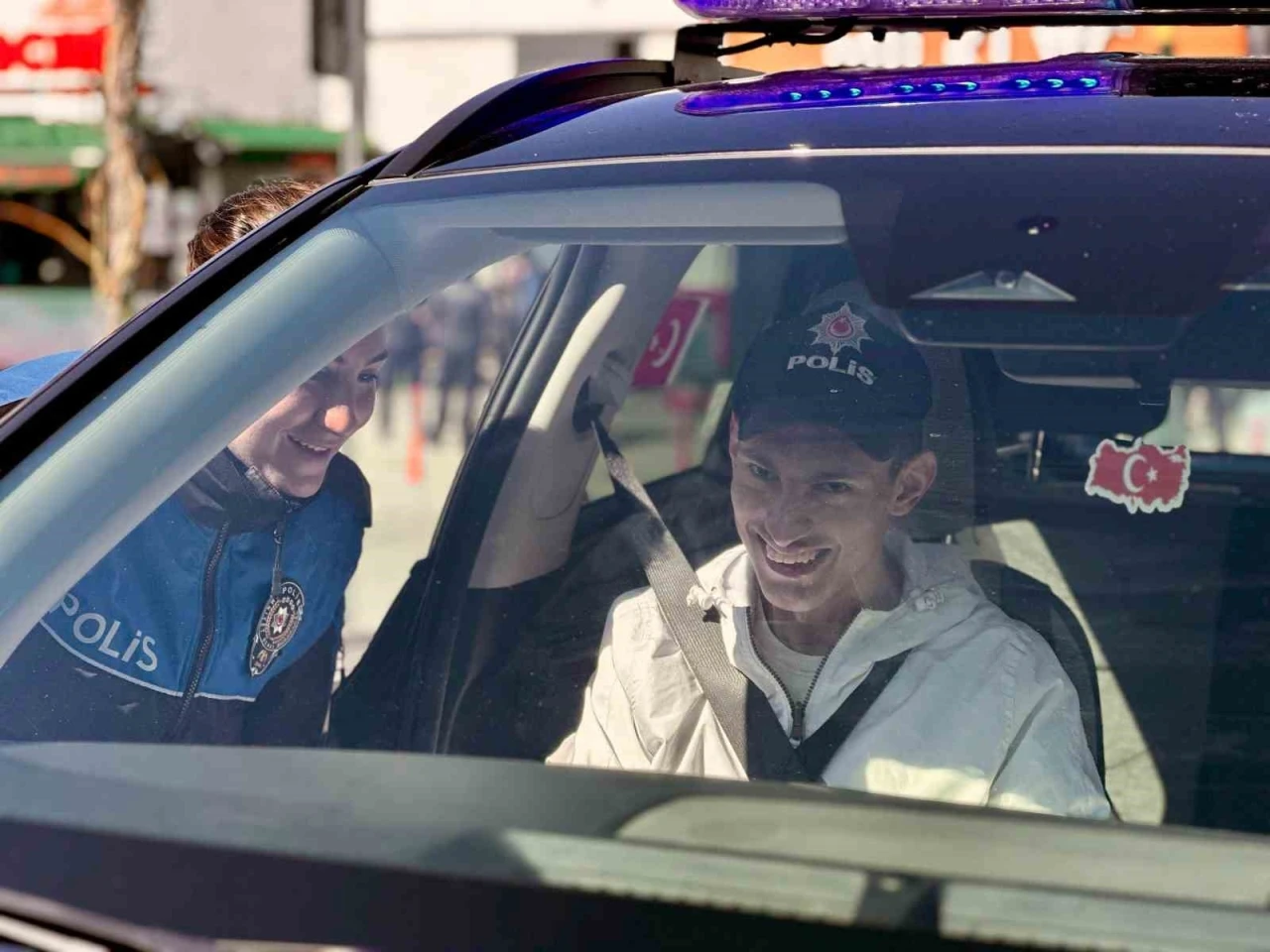 Konvoyun en anlamlı anı ise 23 yaşındaki serebral palsi hastası Cem Özen’in katılımı oldu. Türk bayrakları ve balonlarla süslenen emniyet aracına polisler eşliğinde bindirilen Cem, siren sesleri eşliğinde şehir turuna çıktı. Mutluluğu gözlerinden okunan genç, polislerin yanında olmaktan büyük sevinç duydu. Cem’in yüzündeki tebessüm törene katılan herkese duygusal anlar yaşattı.