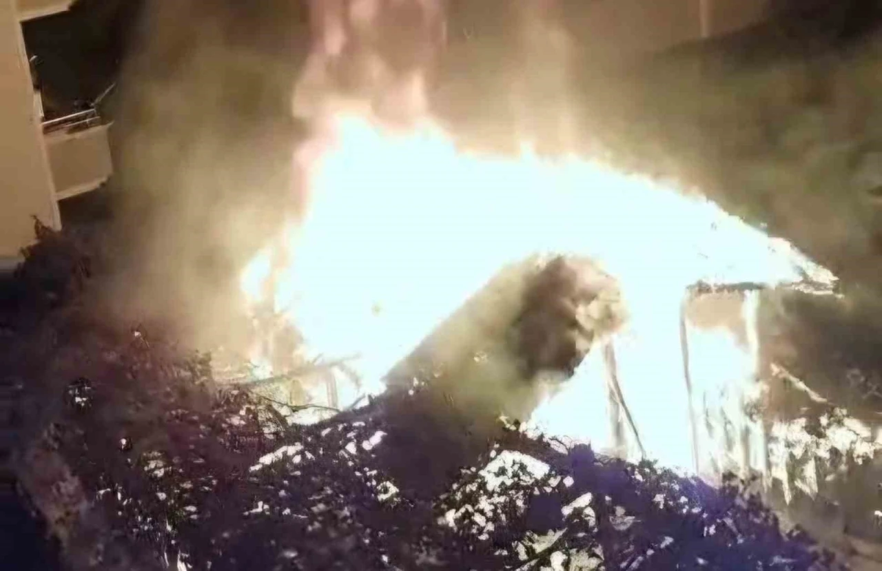 Samsun’da apartman bahçesindeki çardak alev alev yandı