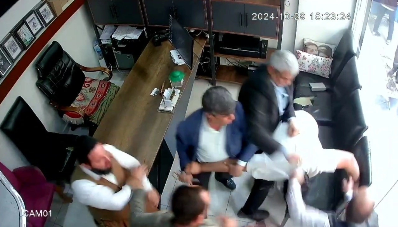 Şanlıurfa’da bir fotoğraf stüdyosuna gelen muhtar ve yakınları, akrabalarına ait borç yüzünden ortalığı savaş alanına çevirdi. Fotoğrafçı ve kardeşinin tekme, tokat ve sopalarla darp edildiği anlar iş yerinin güvenlik kamerasına yansıdı.
