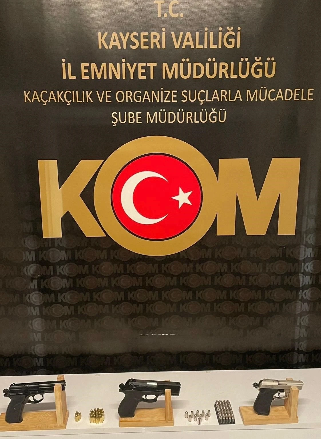 Kayseri İl Emniyet Müdürlüğü Kaçakçılık ve Organize Suçlarla Mücadele Şube Müdürlüğü ekipleri tarafından kentte silah ticareti yapan şahısların yakalanmasına yönelik operasyon düzenlendi. Yapılan operasyonda H.T. (43) yakalanırken, yapılan aramalarda da 3 adet ruhsatsız tabanca, şarjör ve 82 adet fişek bulundu.