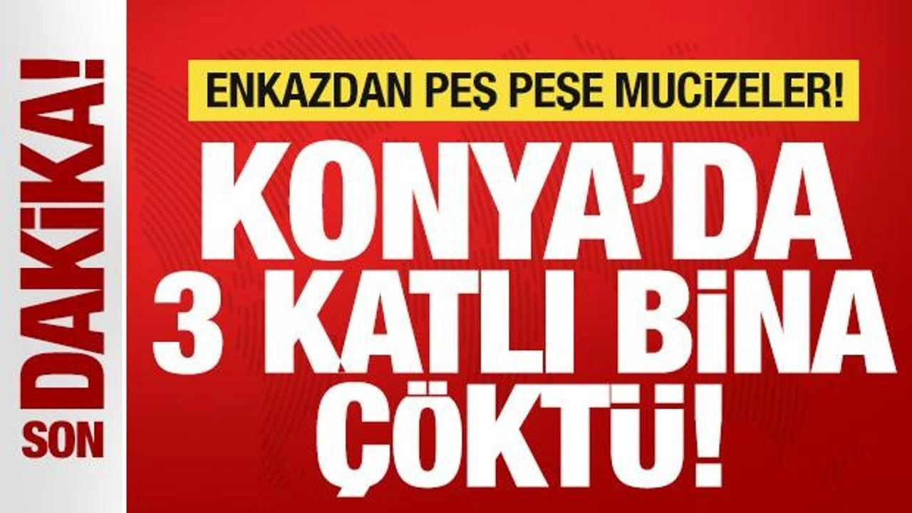 SON DAKİKA KONYA HABERİ: Konya'nın merkez Selçuklu ilçesinde 3 katlı bina çöktü. Çöken binadan 2 kişi canlı kurtuldu. Enkazda kalan 5 kişiden 3'ü ise arama-kurtarma ekiplerinin yoğun çalışmaları sonucunda sağ olarak kurtarıldı.