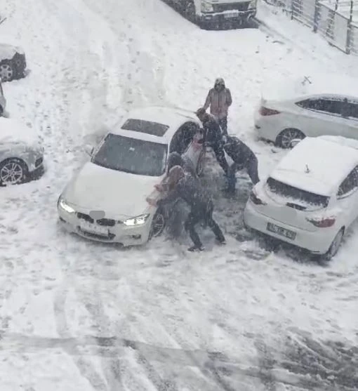 İstanbul Sultangazi’de araçlar kara gömüldü. Vatandaşlar karda hareket edemeyen bir otomobili elbirliğiyle kurtarmaya çalıştı. O anlar cep telefonu kamerasına yansıdı.