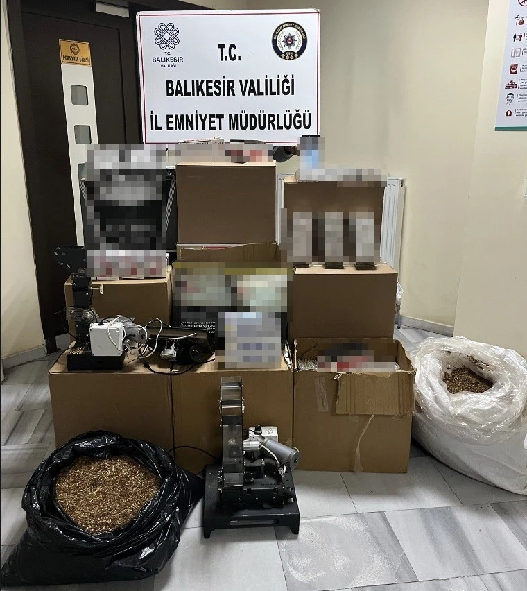 Edinilen bilgilere göre, İl Emniyet Müdürlüğü Kaçakçılık ve Organize Suçlarla Mücadele (KOM) Şube Müdürlüğü ekiplerince yapılan çalışmalarda 4 adet elektrikli sigara sarma makinesi, 116 bin 200 adet bandrolsüz boş makaron, 54 bin 20 adet dolu makaron, 19 bin 800 adet bandrollü boş makaron, 1 hassas terazi, 23 kilo 750 gram açık kıyılmış tütün ve 2 kilo 100 gram bandrollü tütüne el konuldu.