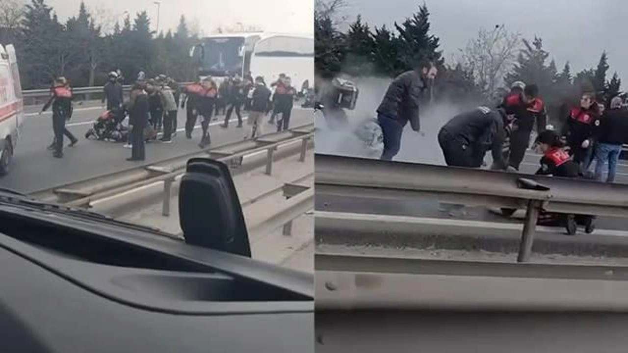 Olay, saat 10.30 sıralarında TEM Otoyolu Altınşehir istikametinde yaşandı. Motosikletli polis memurları ile bir otomobil zincirleme kazaya karıştı.