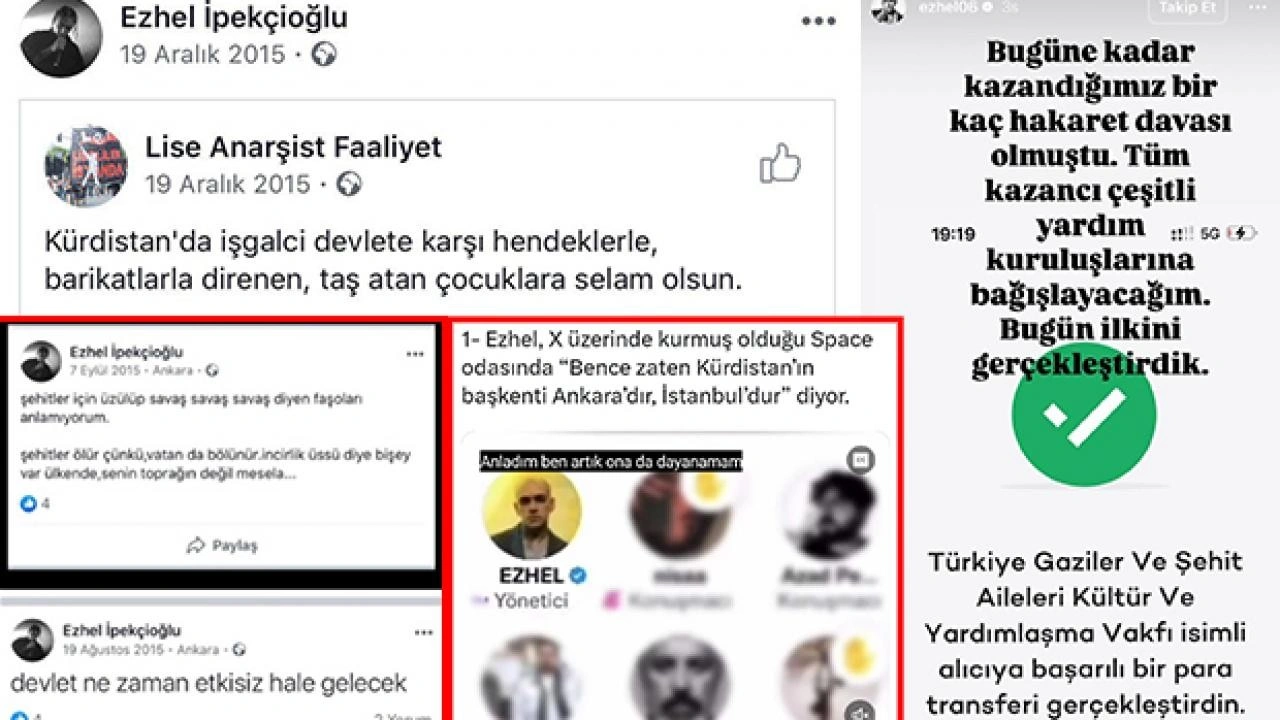 Ayrıca paylaşımda Ezhel'in daha önce terör örgütüne yakınlığı ile gündeme gelen paylaşımlarına yer verildi.