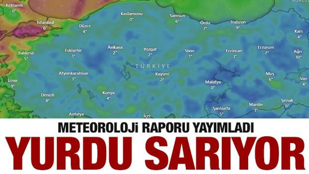 Meteoroloji Genel Müdürlüğü'nün yayımladığı tahminlere göre bugün yurdun batı kesimlerinde sağanak, iç ve doğu kesimlerinde buzlanma ve Doğu Anadolu ile Doğu Karadeniz taraflarında çığ bekleniyor.